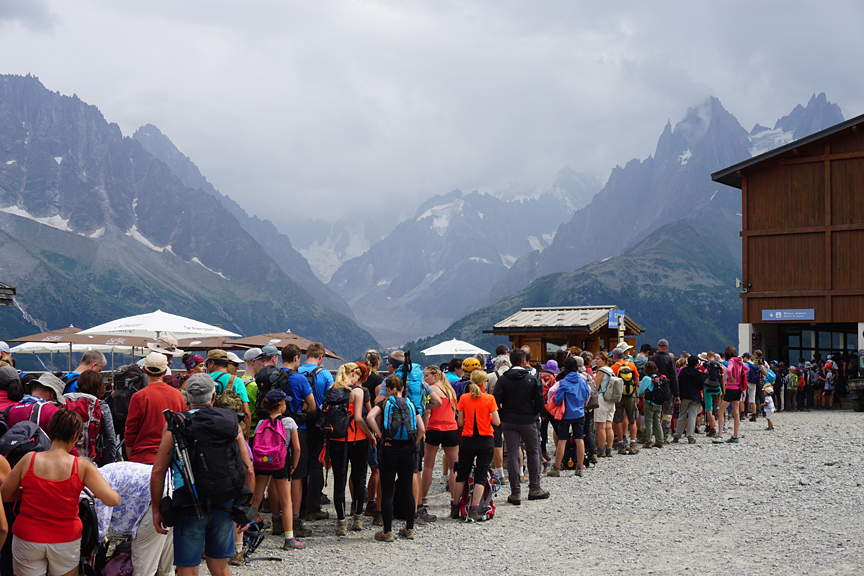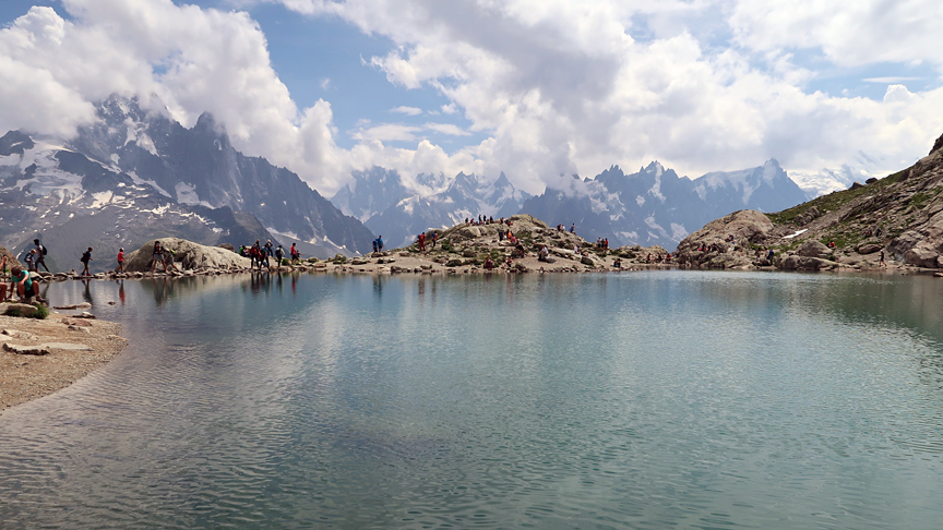 Our descent took us past the justifiably famous and popular "Lac Blanc". The Sunday crowds were out in force. |