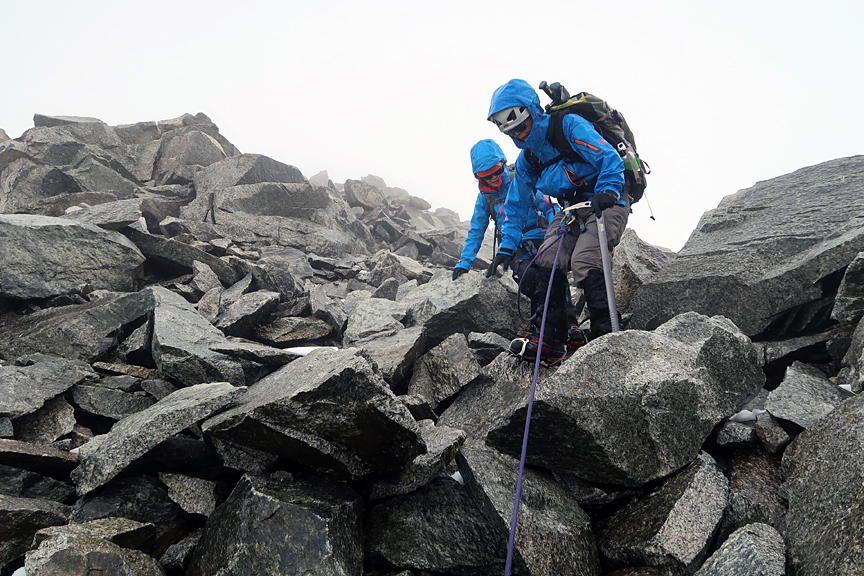 Day 3: Kathy, Yichie and Yibing headed over to the Petit Flambeau for a bit more acclimatization to the altitude. Rain was in the forecast, but the weather wasn't so bad as we started up the ridge. |