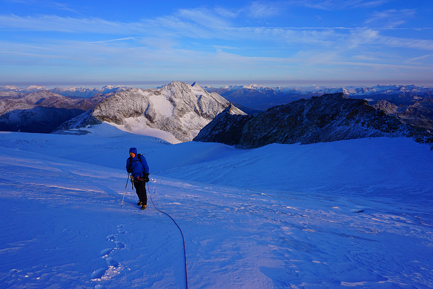 Another summer, another Alps climbing vacation. This year Grant and Mark had a bit of bad weather to contend with, at least for the first couple days, but after that it was sun, sun sun. With poor weather forecast for the afternoon-evening of our day 3 (out of 6) we had to strategize a bit on how to make the most of it. |