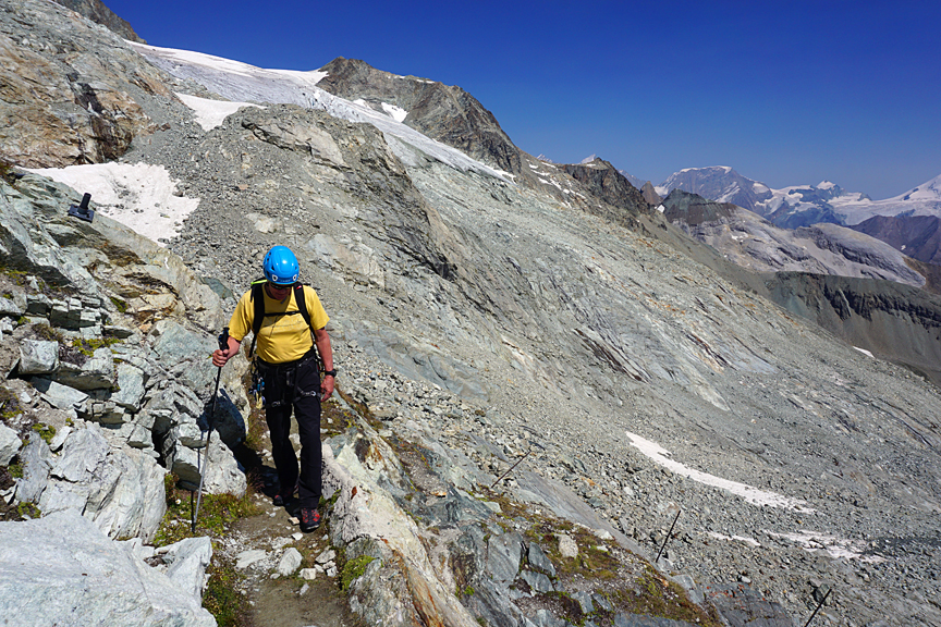 Day 2 was up to the Tracuit hut, with designs on the Bishorn. |
