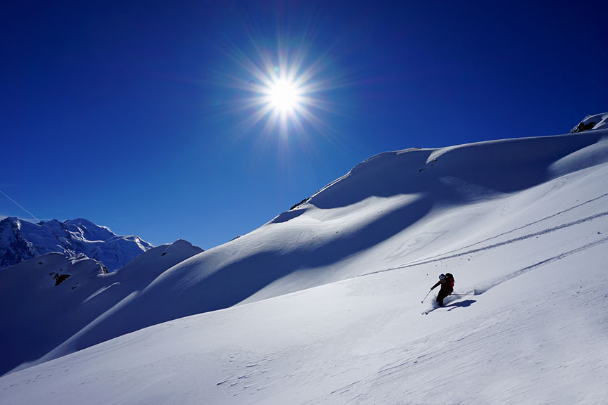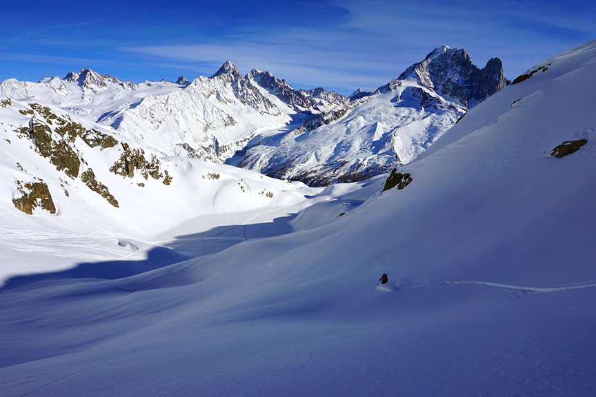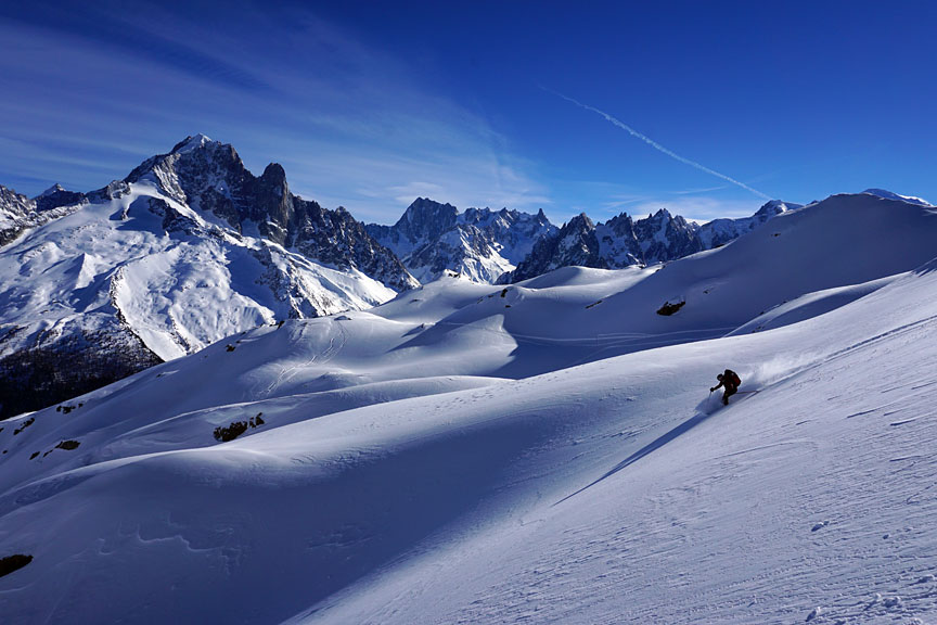 The Mont Blanc massif is impressive viewed from this side. |