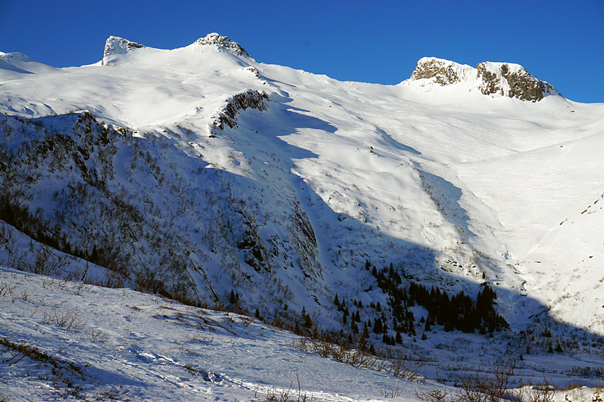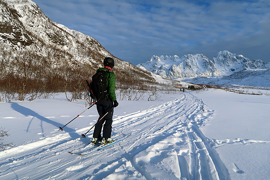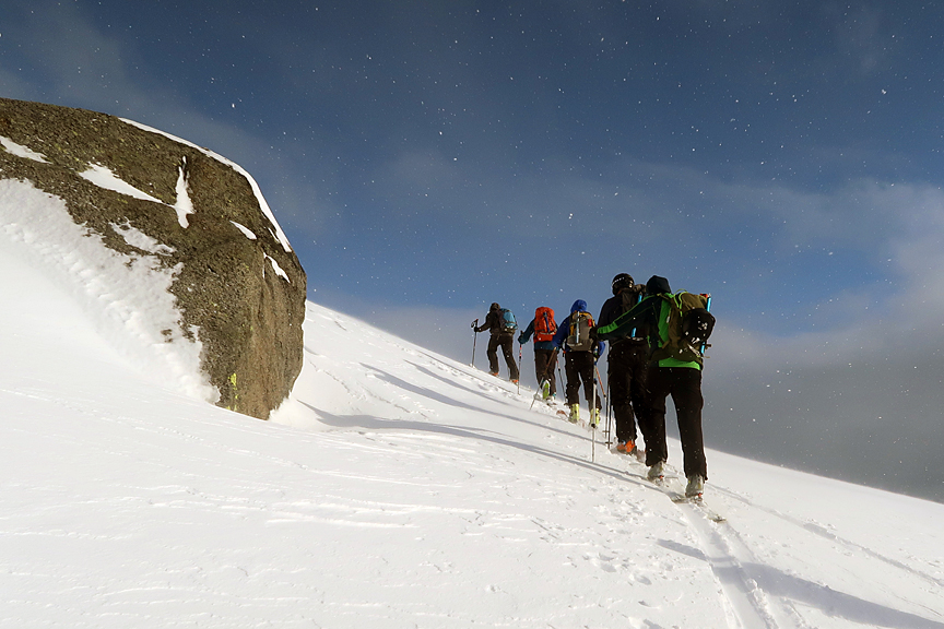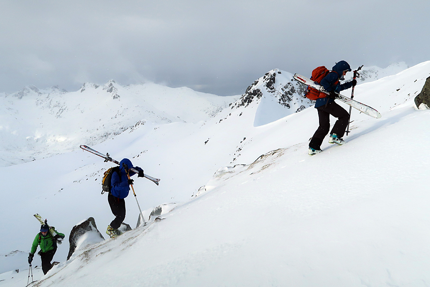 The snow cover is a bit thinner than last year, but still plenty to slide on! Our first day's objective, Varden. |