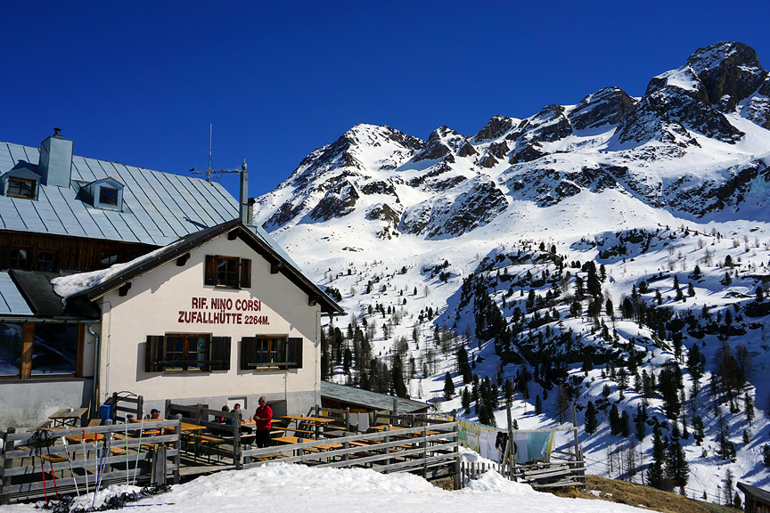 Day 1, in gorgeous sunshine, we stop mid morning for a coffee at the Zufall hut. |
