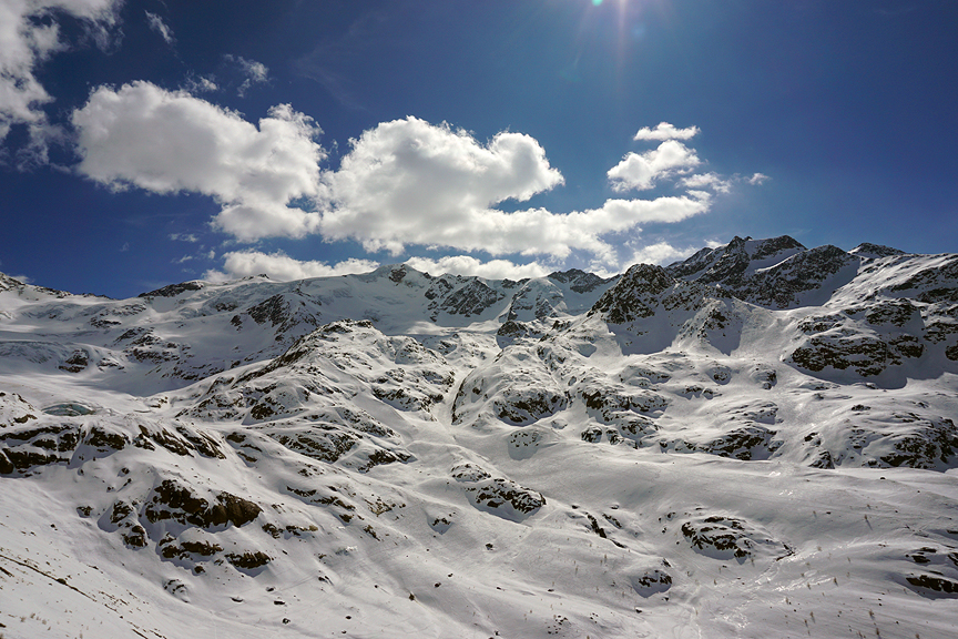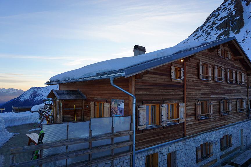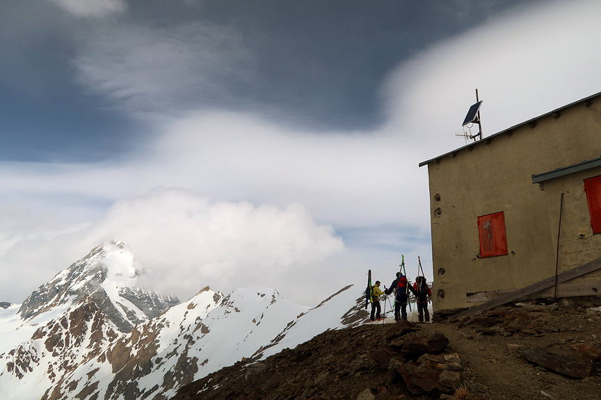 A deteriorating forecast made us decide to get up early and head back out to Sulden a couple of days early, in order to avoid the crossing in a coming blizzard and high winds. We headed first up to the Pizzinin hut in the early morning. |
