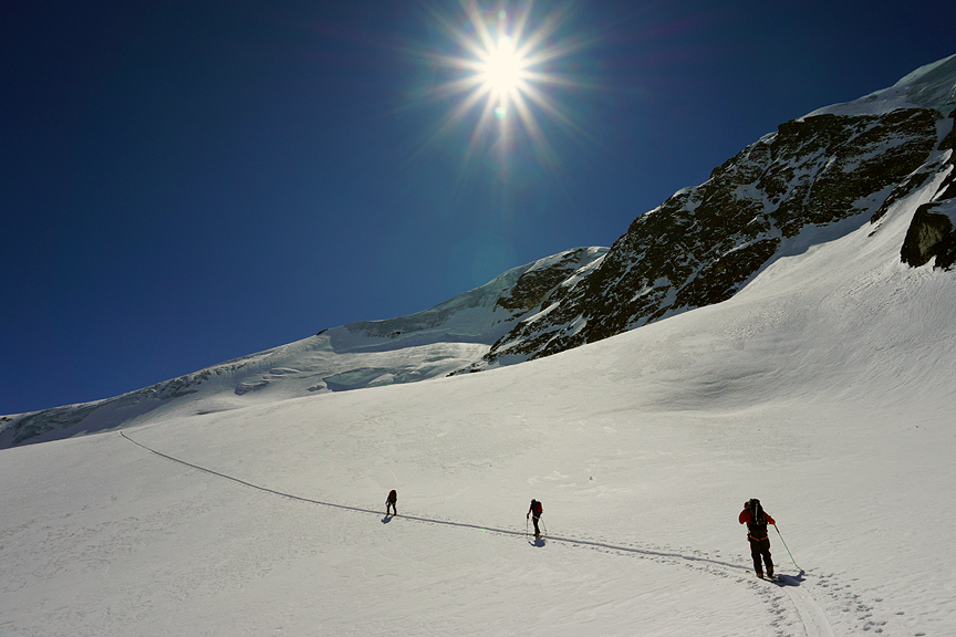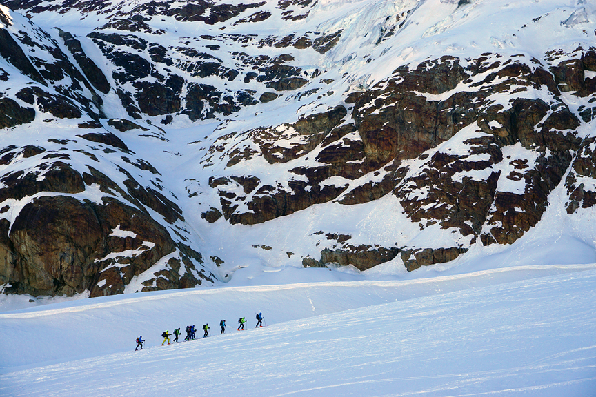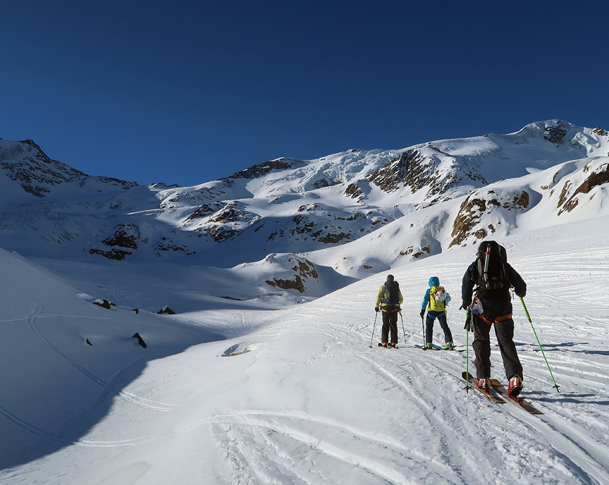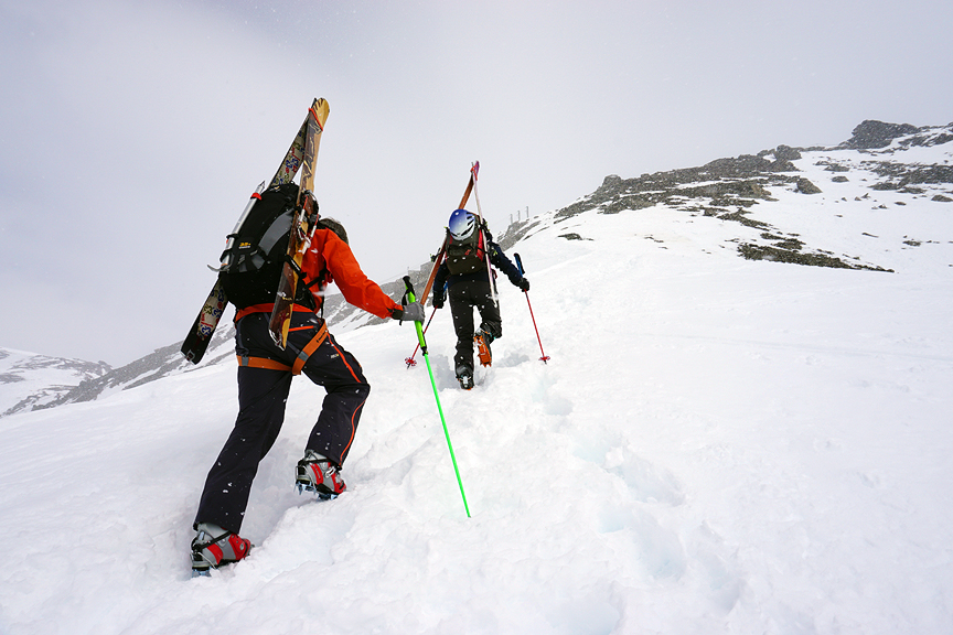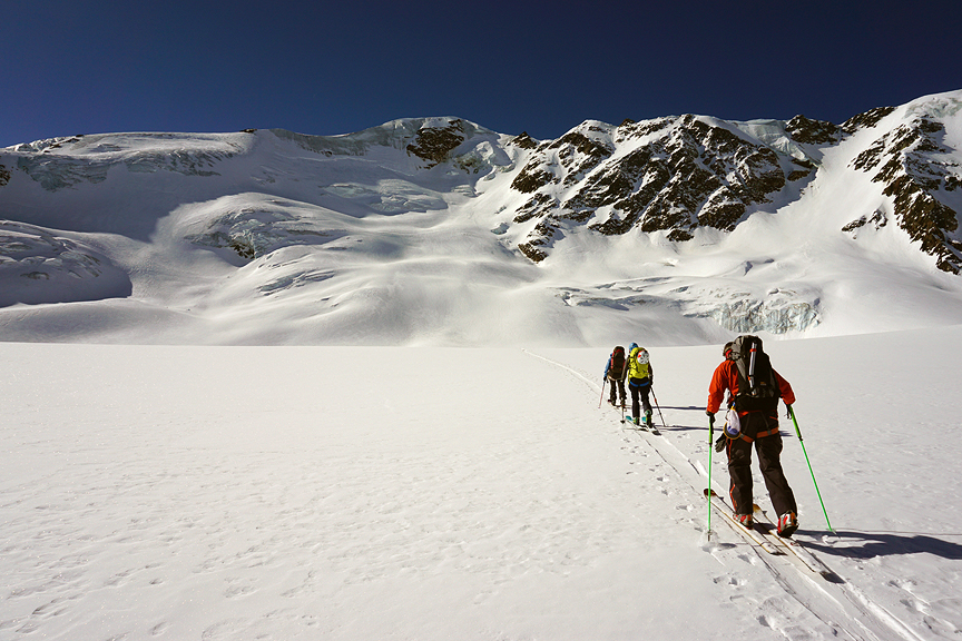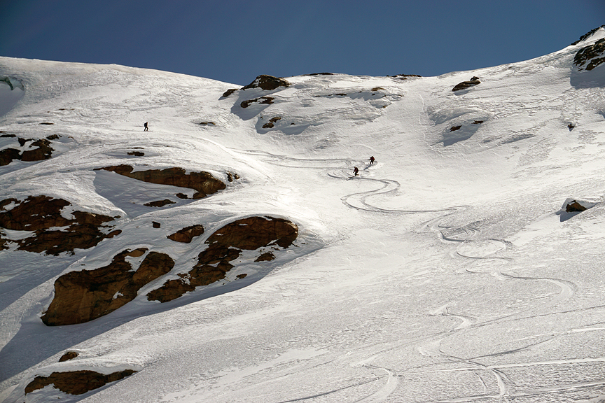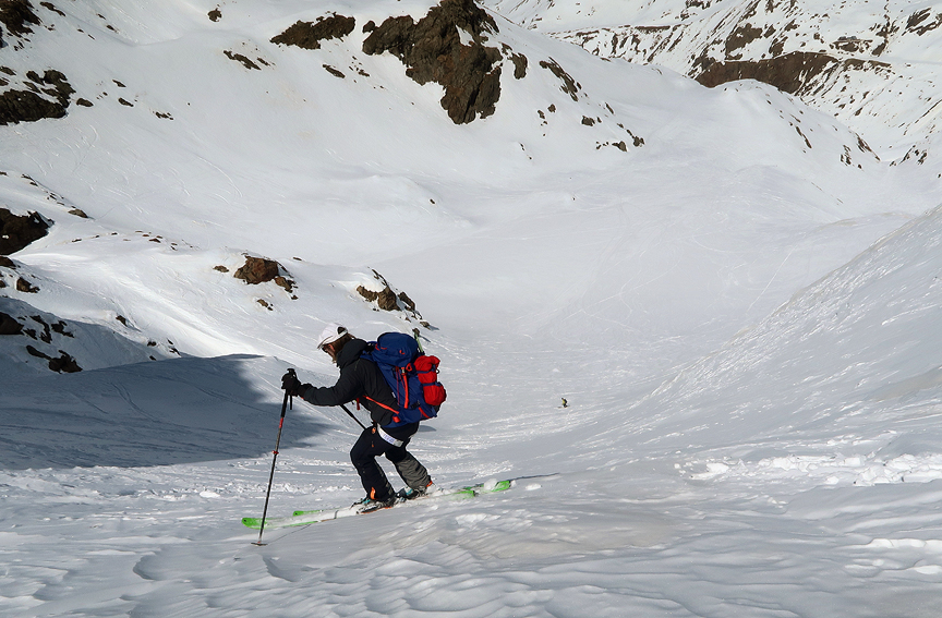 On our first day out of the Branca hut, we went searching out north facing snow. We went to the ridge crest in the far distance. |