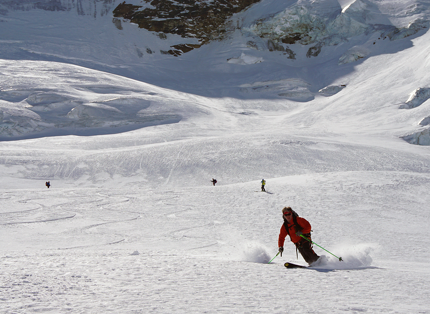 It took some doing, but we did at last find good snow softened by the mid afternoon sun. |