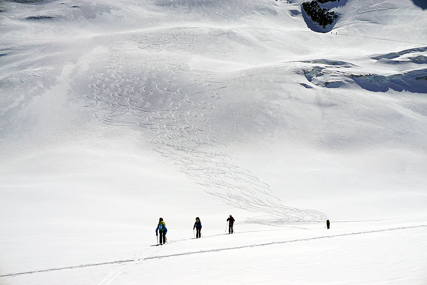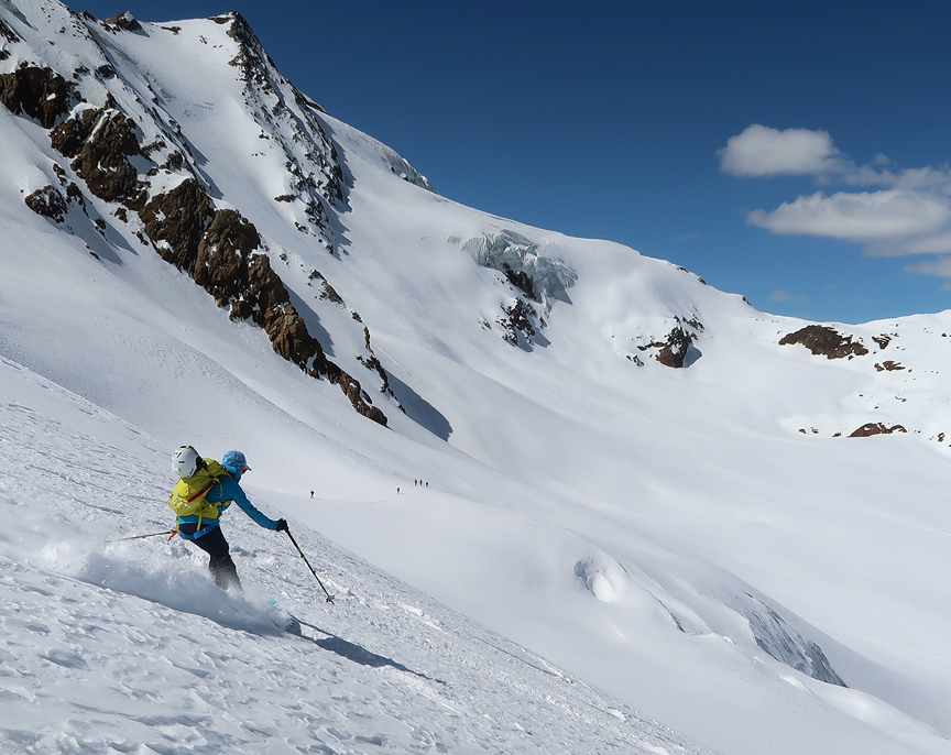 We're headed for that empty smooth snowfield right in the middle of that glacier! |