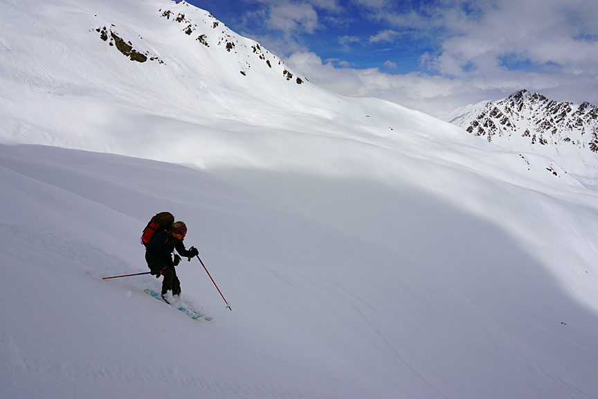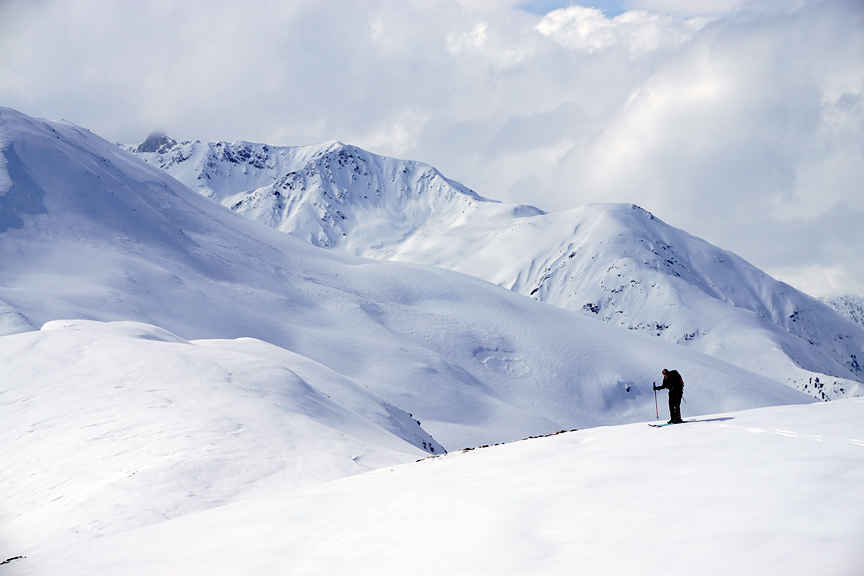 We had to work the ridge a bit to stay off the steeper north-facing slopes. |