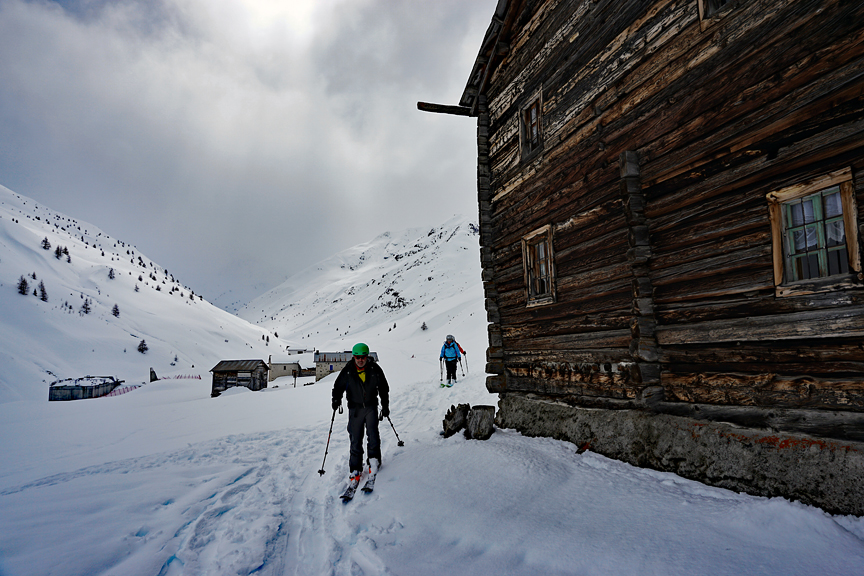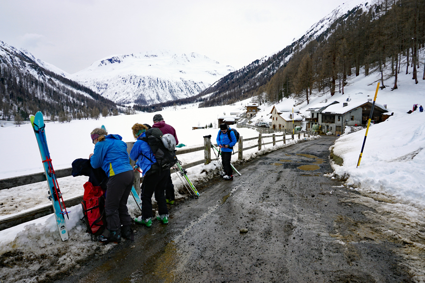 Though we had some fun skiing, the light was not very conducive to photography. Sorry. Eventually, back in the valley it is time to put skis away and find the bus stop in Campacciolo de Sopra. |