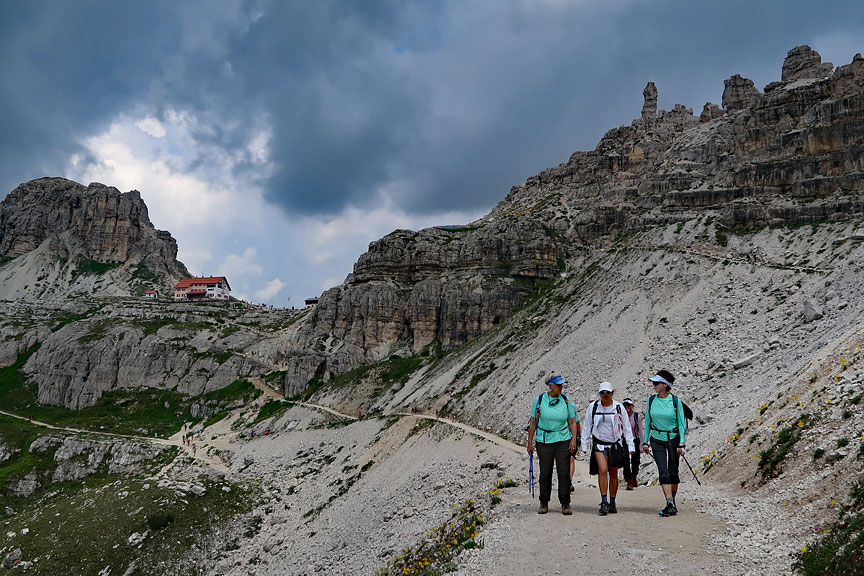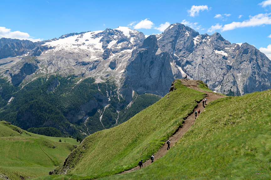 We began our trip with a popular "balcony" hike facing the Marmolada, the highest peak in the Dolomites and the only one with a glacier still persisting. |