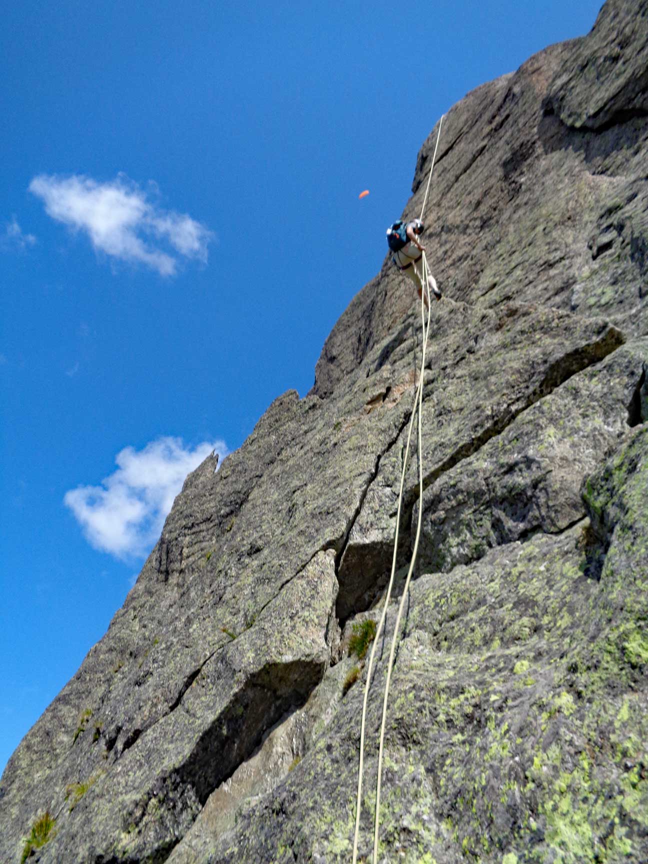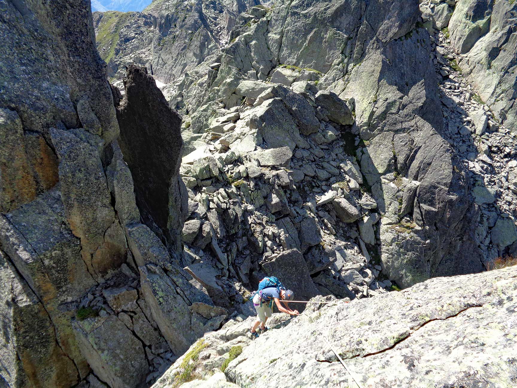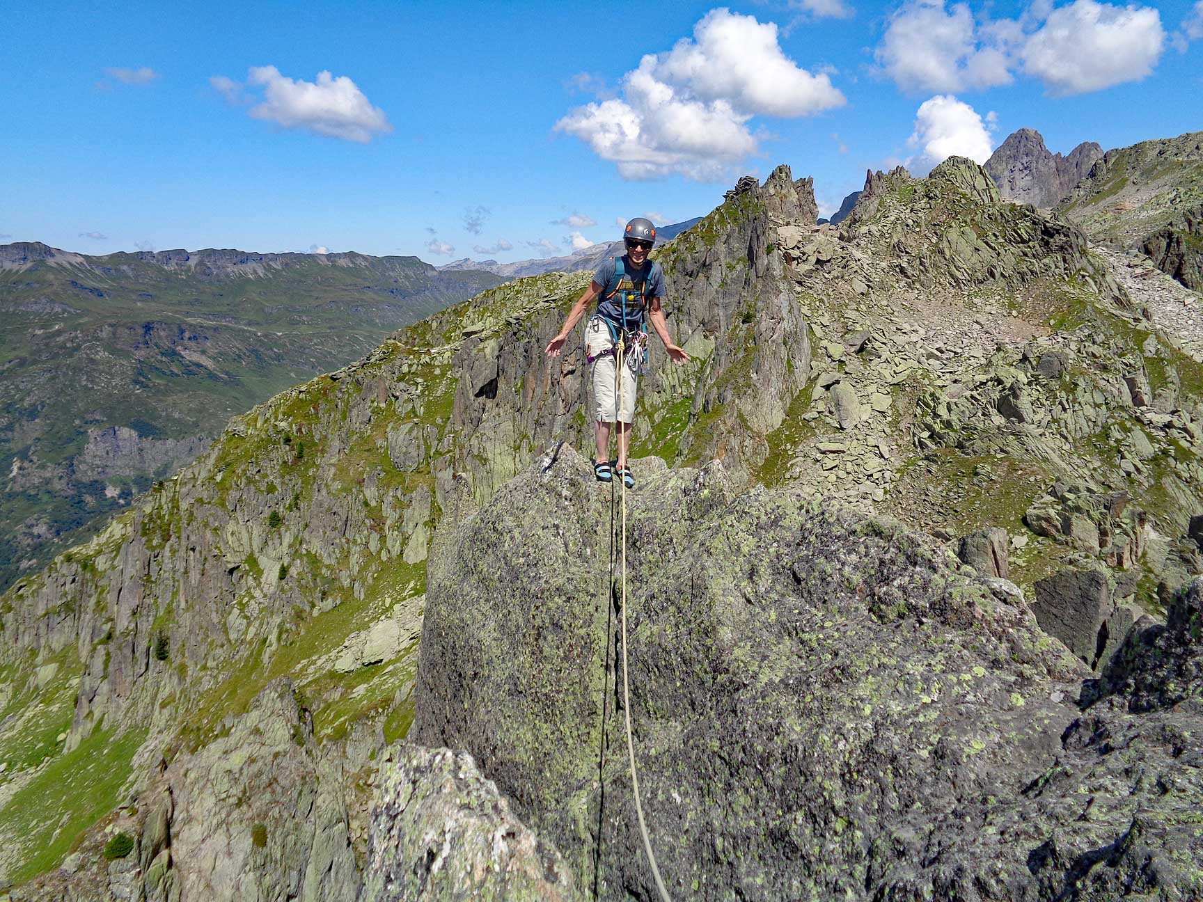 The amazingly narrow summit ridge of the Clocher. |