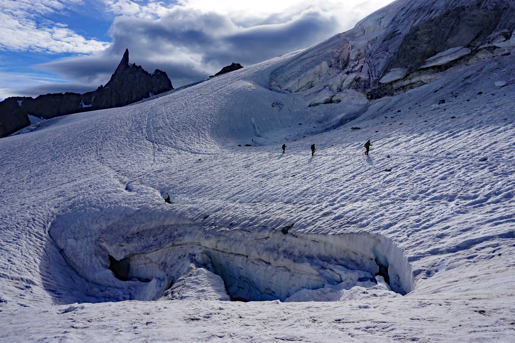 Wandering the glacier on our return to Point Helbronner. |