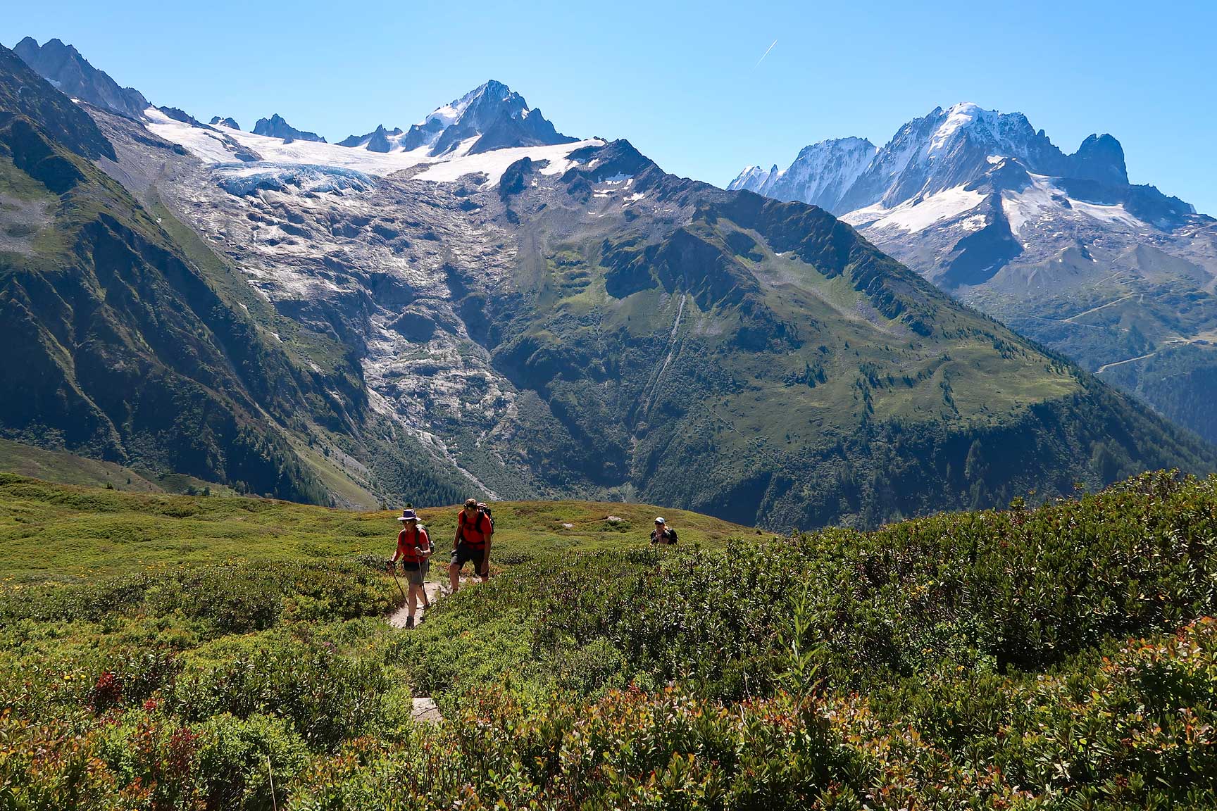 Rising high above treeline above the village of Le Tour, we begin to enjoy expansive views. |