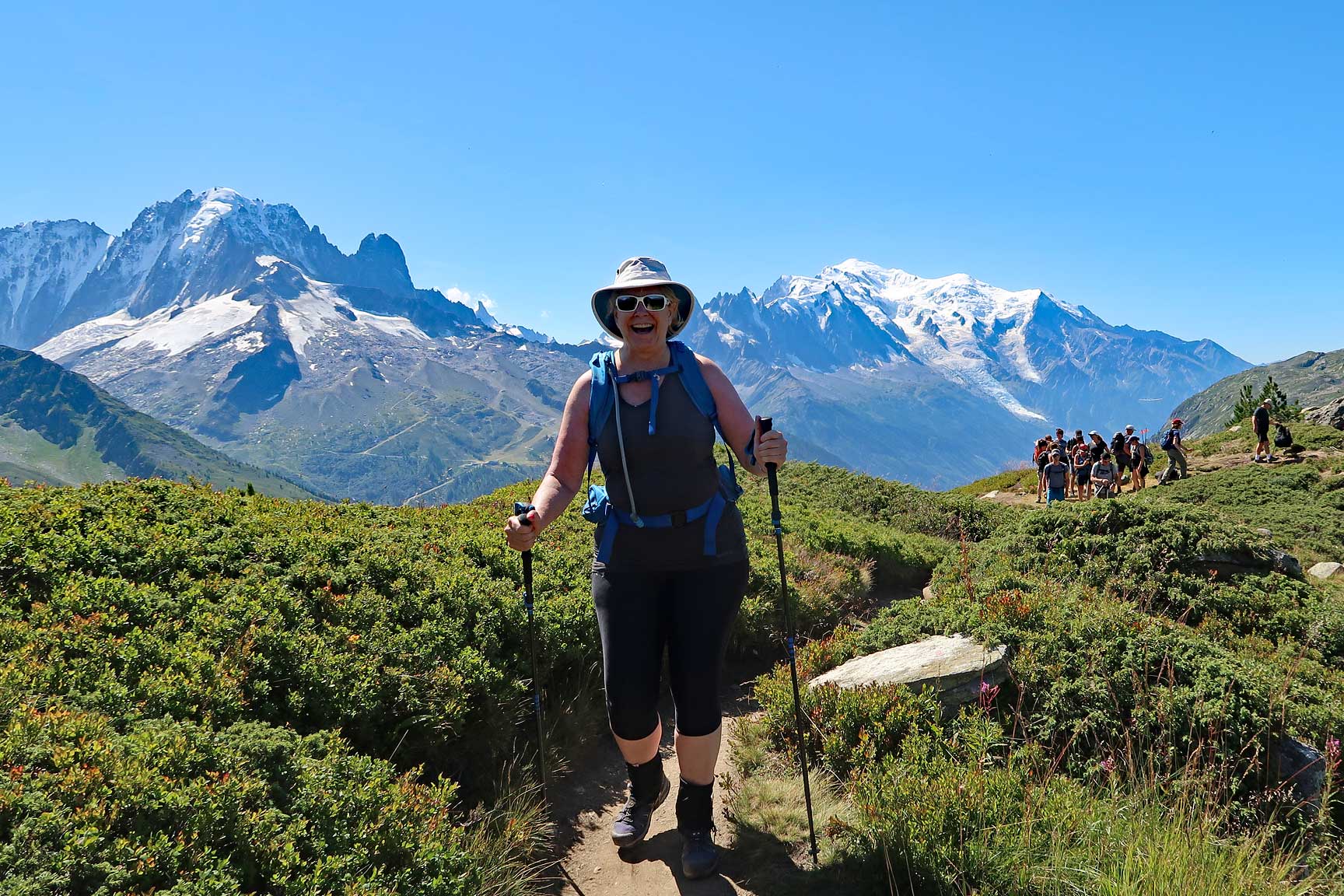 On the Aiguille des Posettes, Mont Blanc smiles in the distance. |