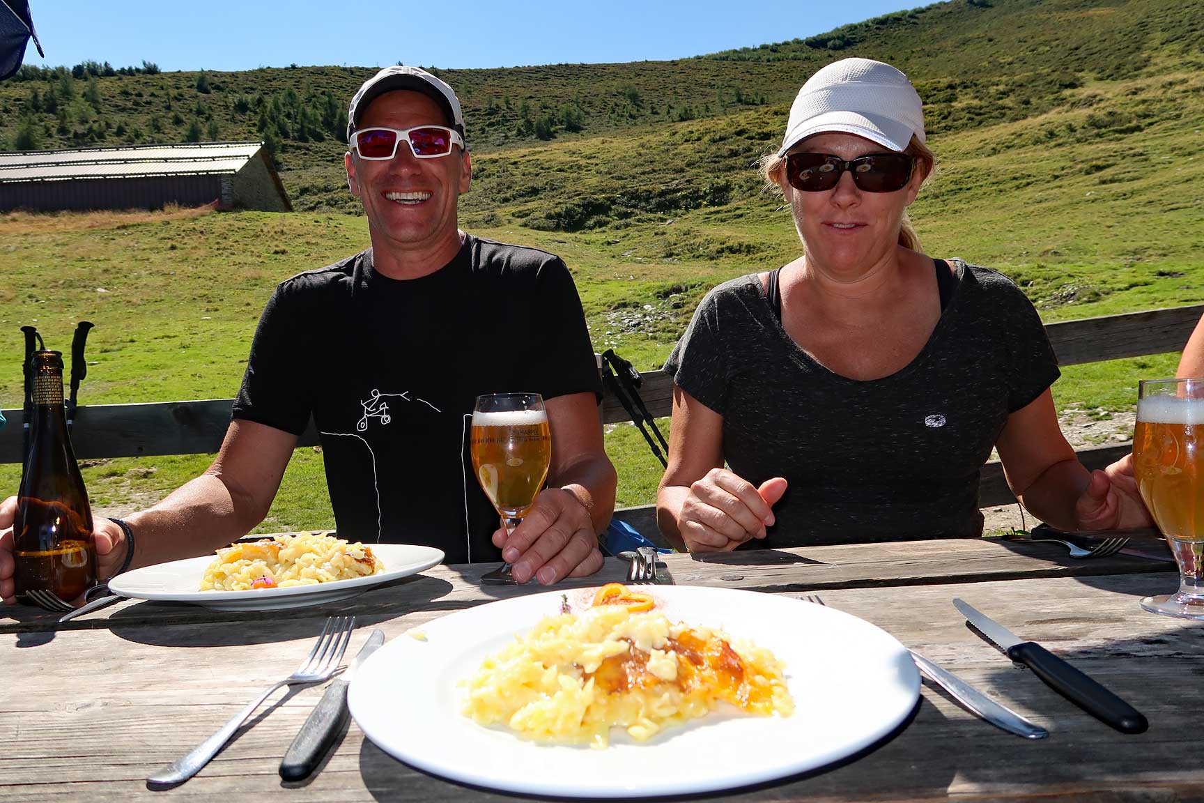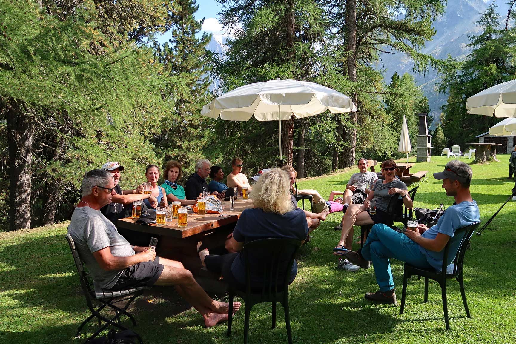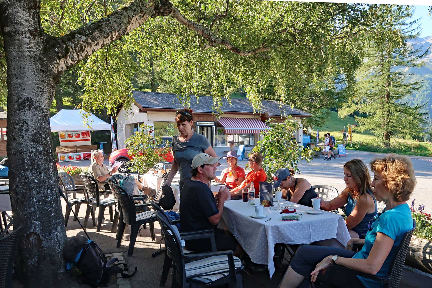 Day two featured an early coffee break on the shady terrace of the hotel at the Col de Forclaz. |