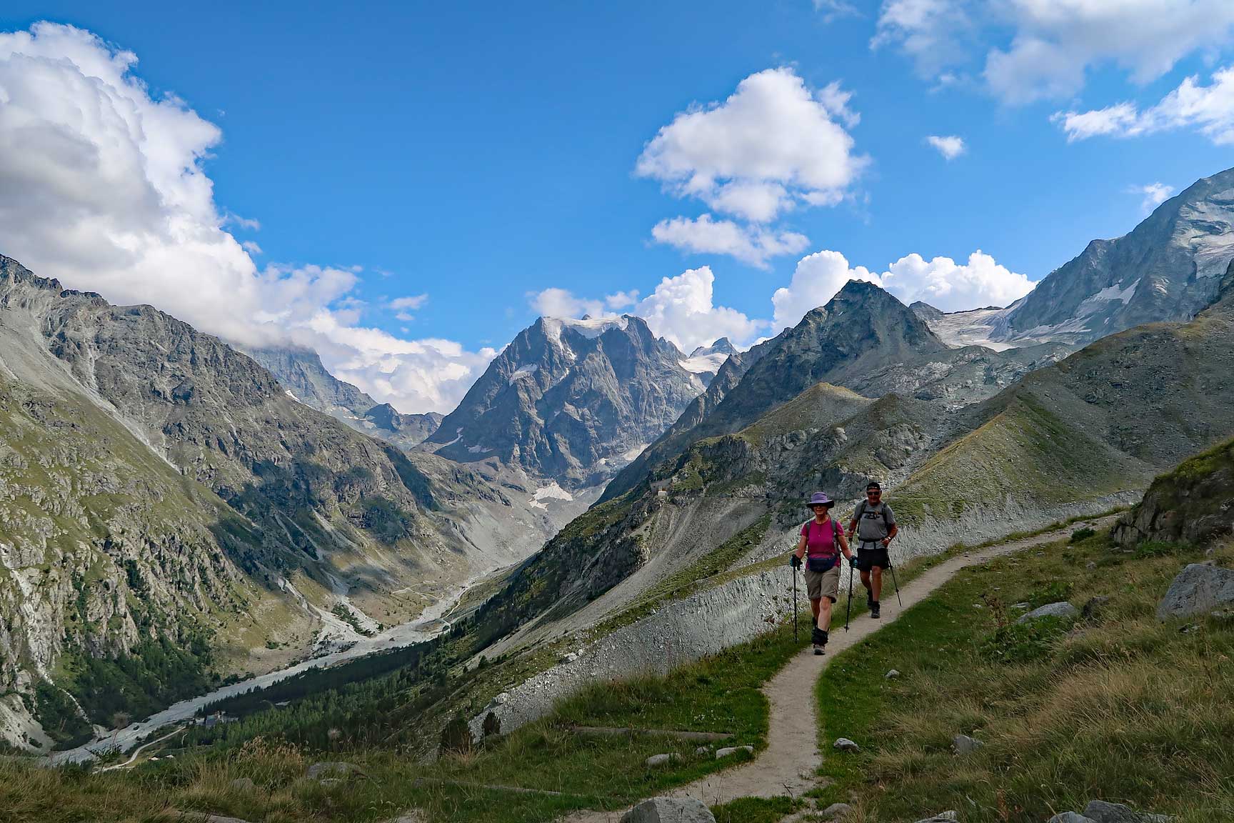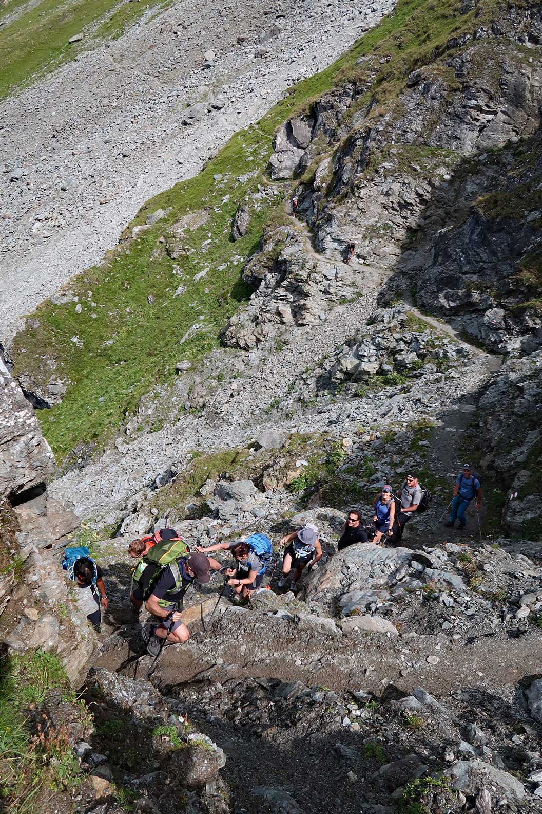 After our second (and last of the trip) stay in a mountain hut, we begin with a short climb up over the Col des Roux, and then down to the Lac des Dix. |