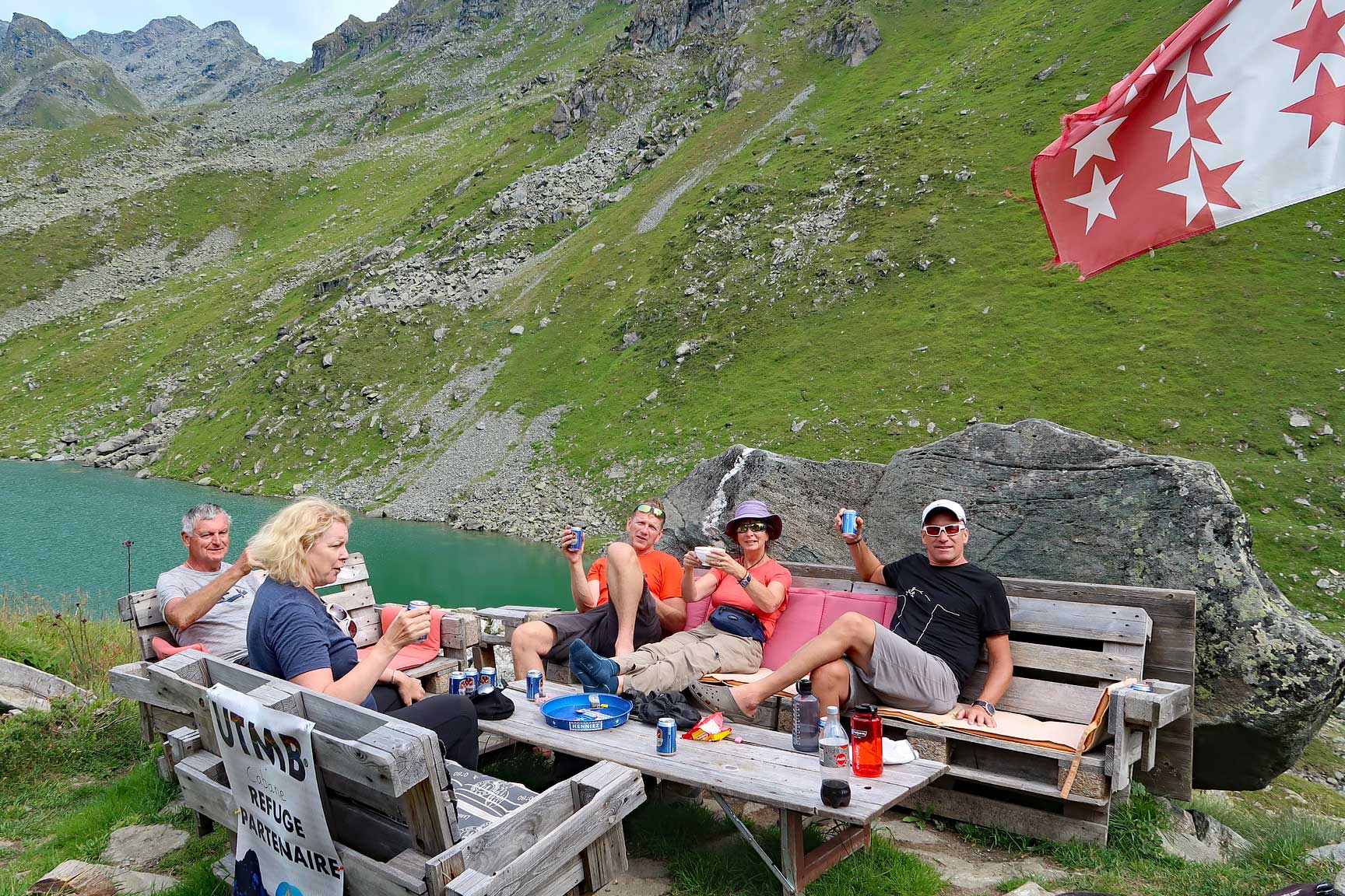 Relaxing at the Cabane de Louvie, after yet another icy but refreshing dip in another mountain lake! |