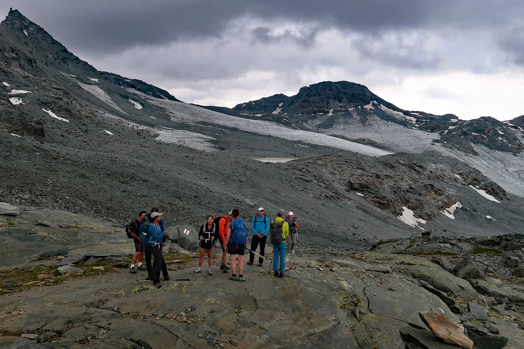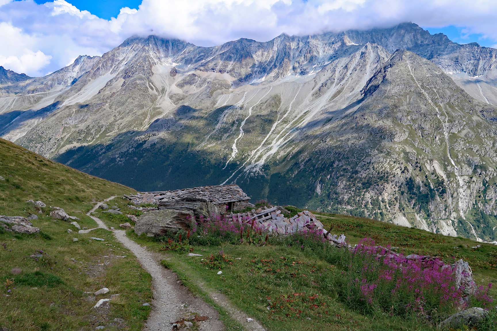 Passing the ruins of herdsmens' barns on our descent to Arolla. |