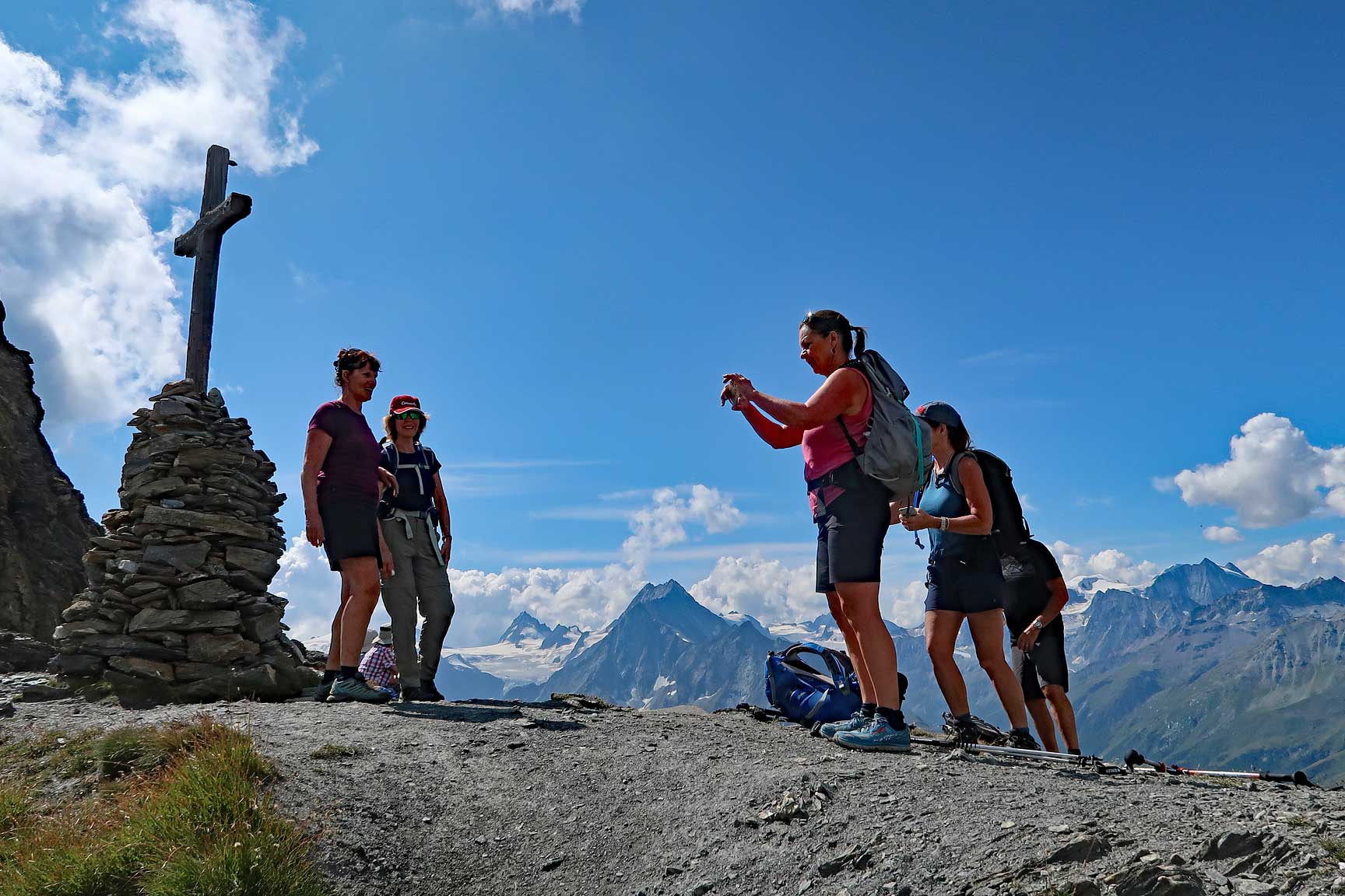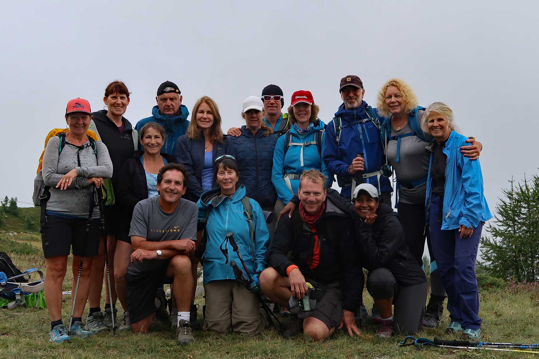 Joe Haegert and his friend Heather Wiggins, organized a large cohort of friends to hike the Chamonix to Zermatt Walker's Haute Route with me (Kathy) and colleague Rupert Hutchinson this late summer. I suspect that the Emergency Room services of the greater Vancouver, B.C. area were probably all but closed down due to the absence of this group, which contained a dsproportionately high concentration of surgeons, specialists and nurses from that medical community! I trust the city survived their absence. |