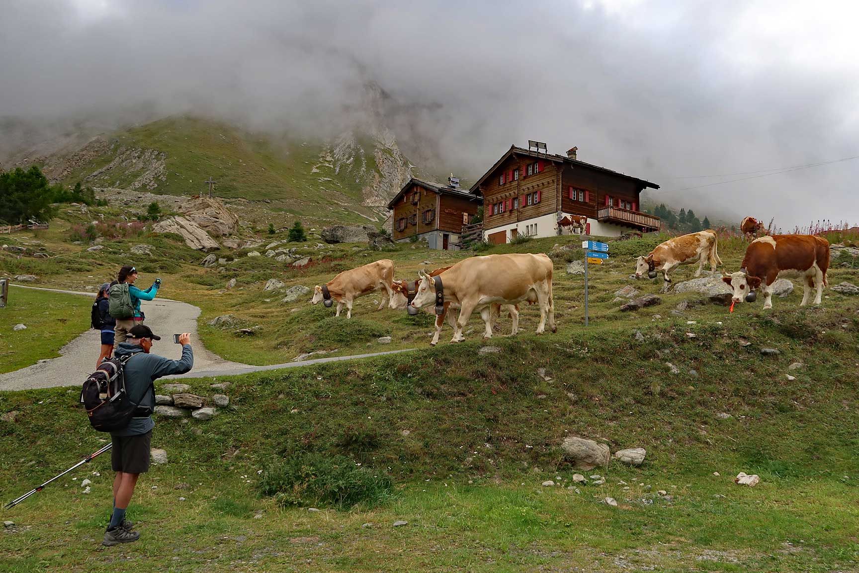 Day 9, our last day, we have a short walk into Zermatt from the Täschalp. We can't resist shots of this quintessential Swiss vignette as the cows are brought down from their higher pastures. |