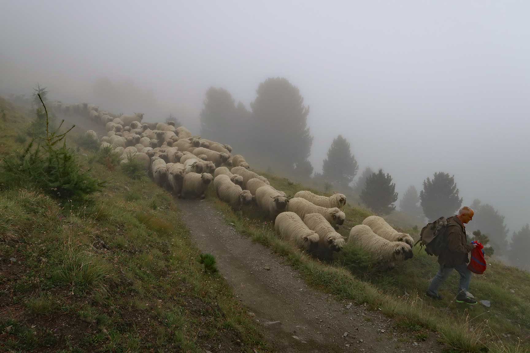 More animals being prepared for their autumn descent to the lowlands, these are the very cute Valais blacknose sheep. |