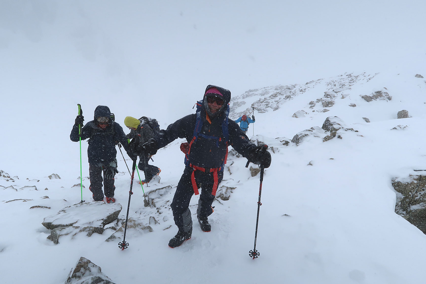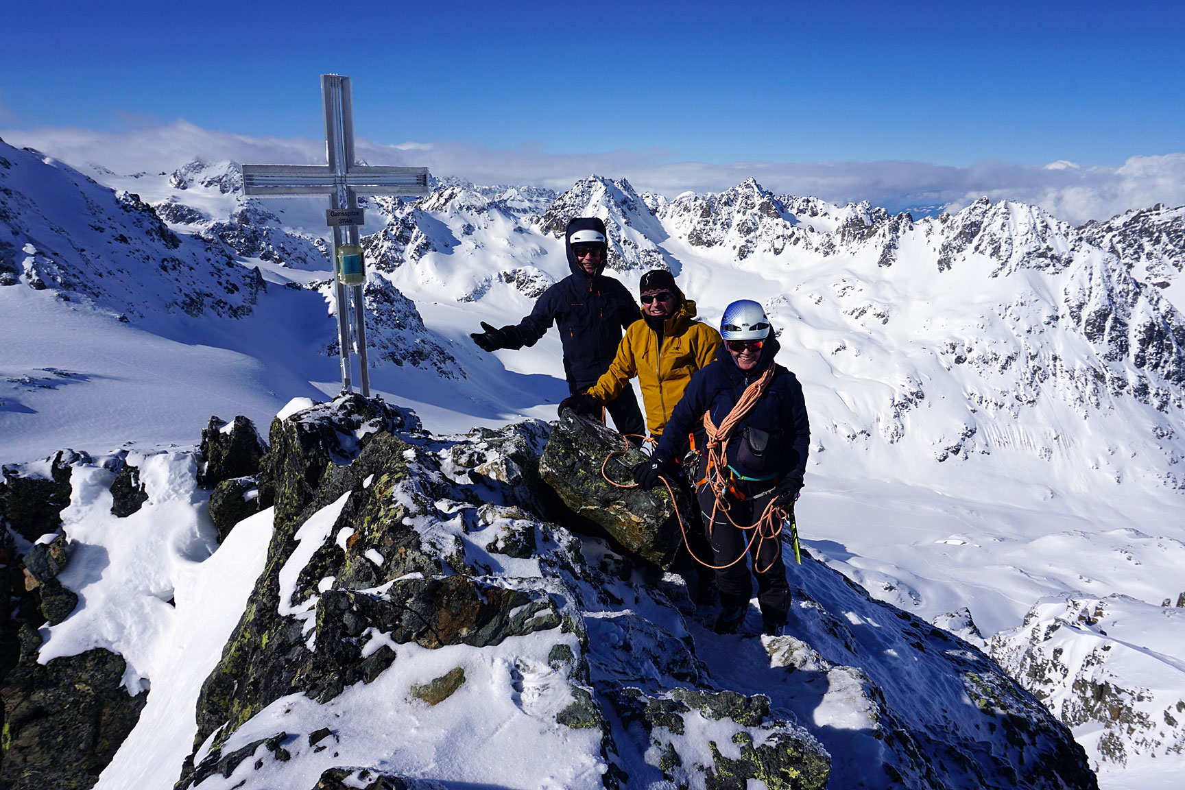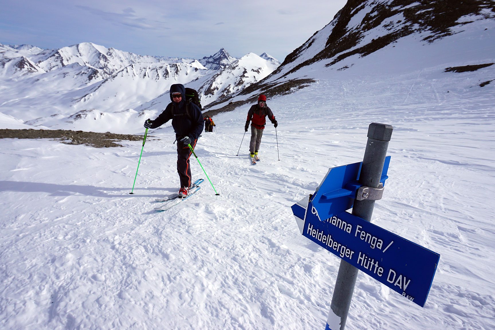 Day four brought wind and snow. We braved both to head up the Hintere Jamspitze. |