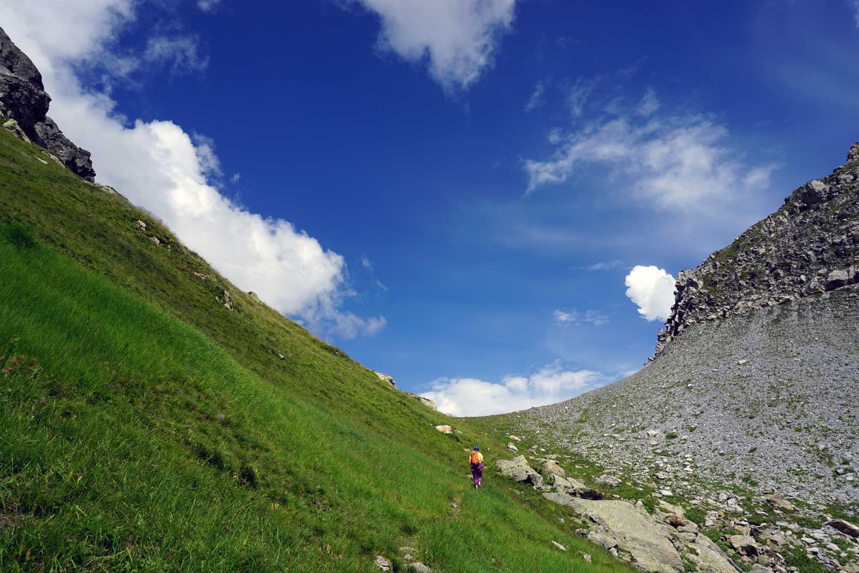 After some time we reach the Col de la Fenêtre, our first landmark, but still an hour's walk to the start of the route. |
