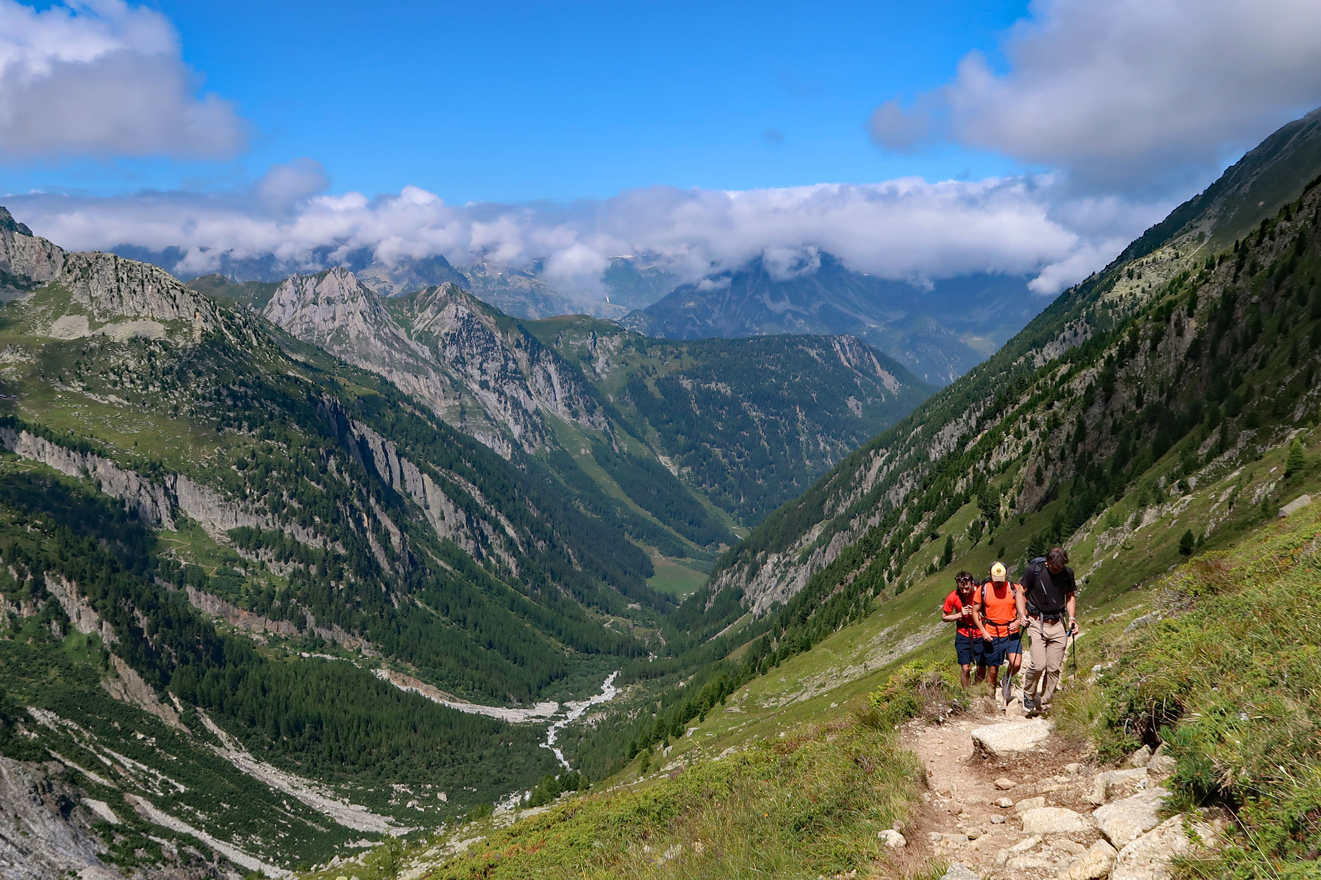 Day 3, we headed into Switzerland. This photo shows us high above the valley of Trient, on our way to the Fenêtre d'Arpette. |
