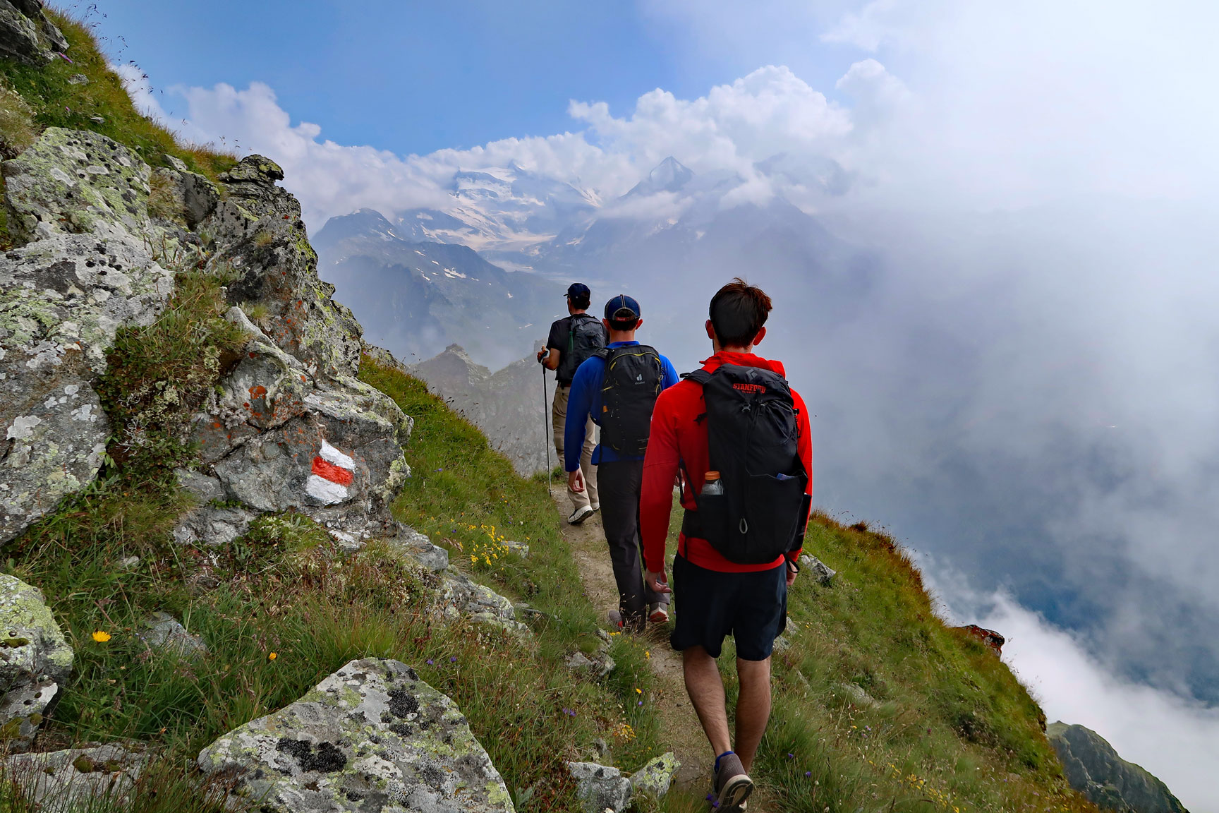 Day 4, after a short taxi transfer to Verbier, we are once again high up, on the aptly named "Sentier des Chamois", the path of the chamois. |
