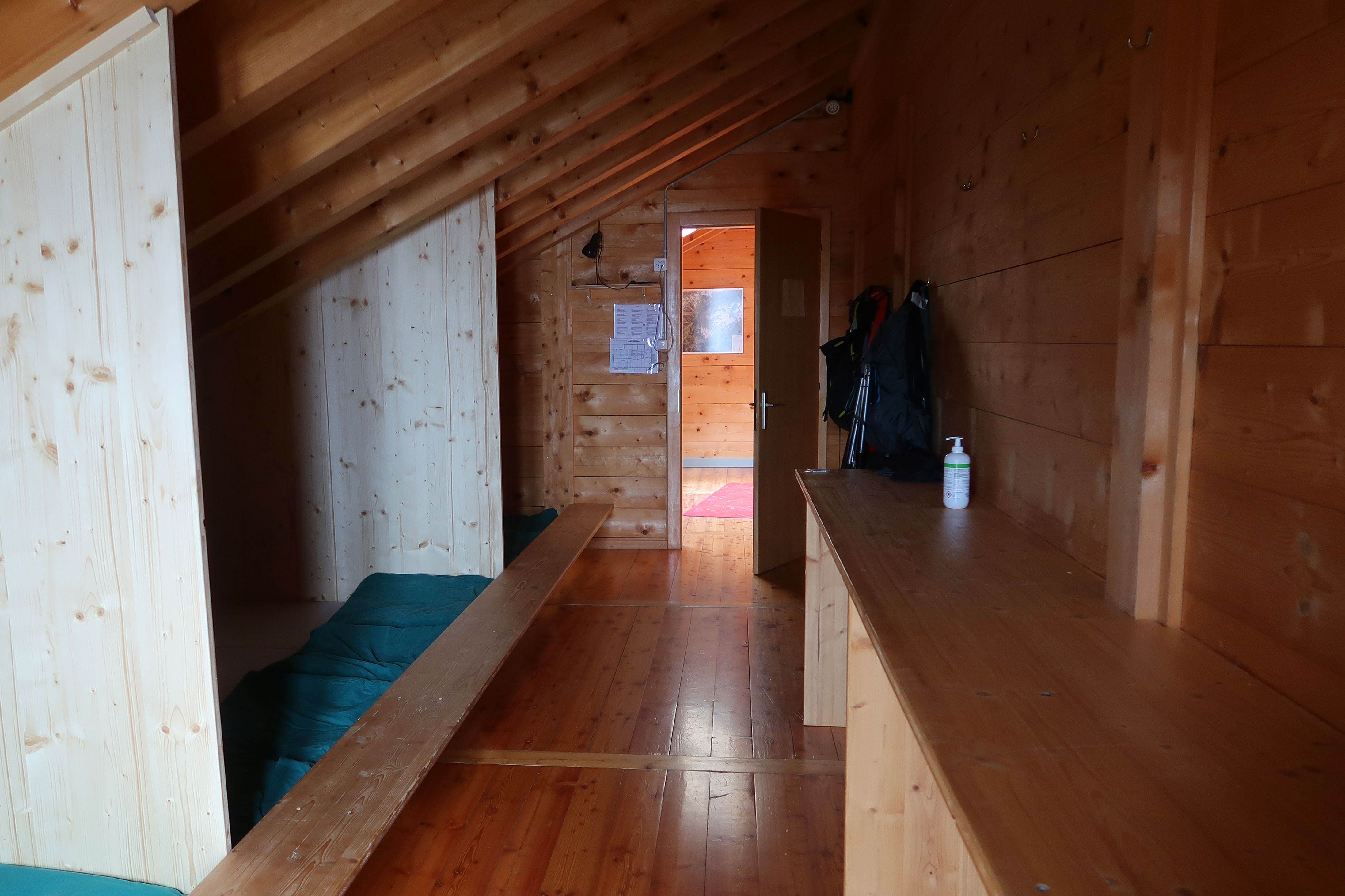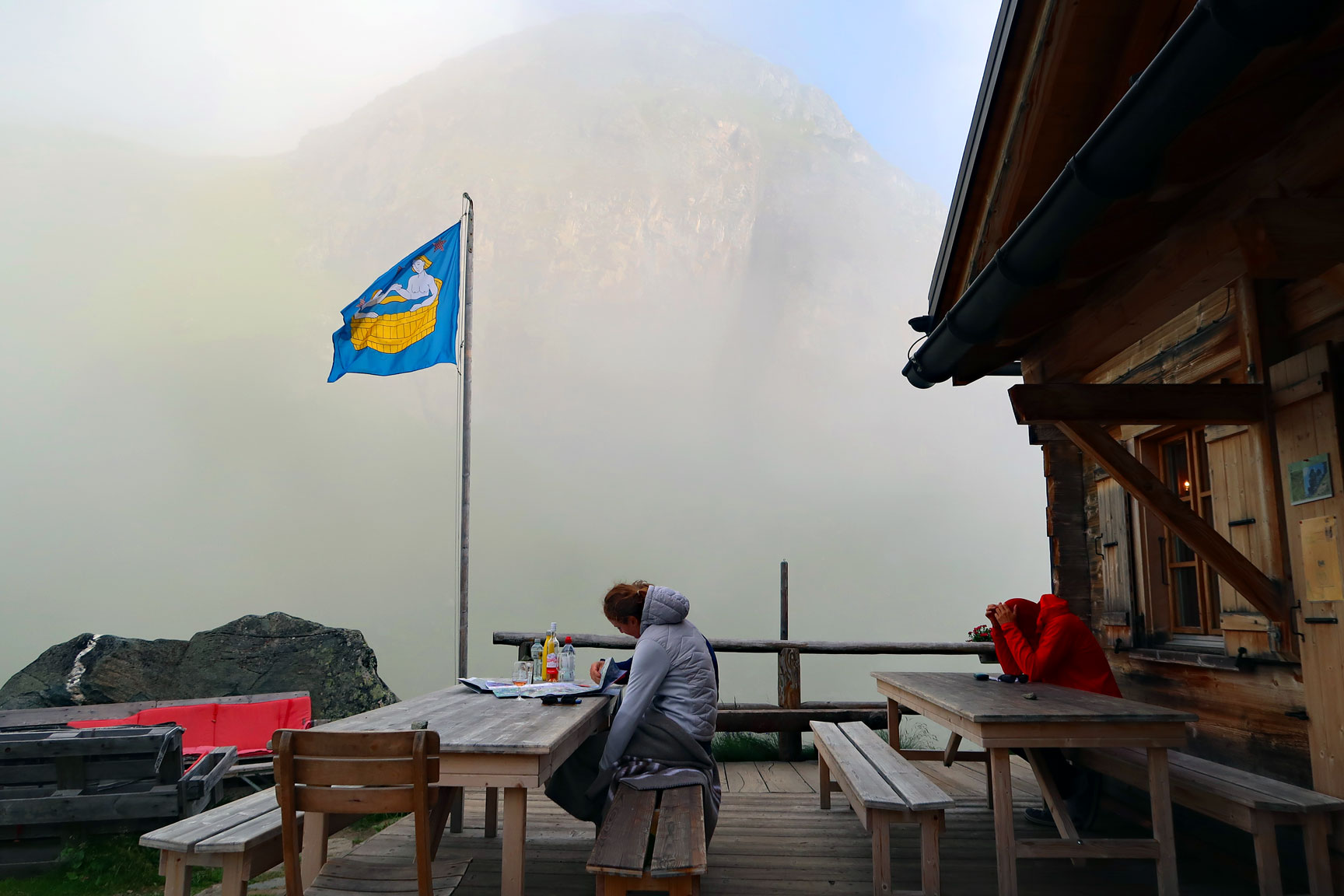 Our destination for the day, the cozy Cabane de Louvie, nestled above the lake of the same name. |